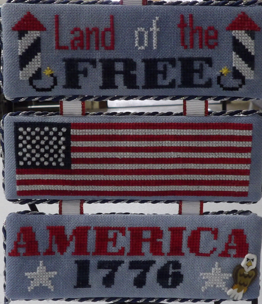 Star-Spangled Trio by Barefoot Needleart celebrates America's 250th with a classic seaside sign.