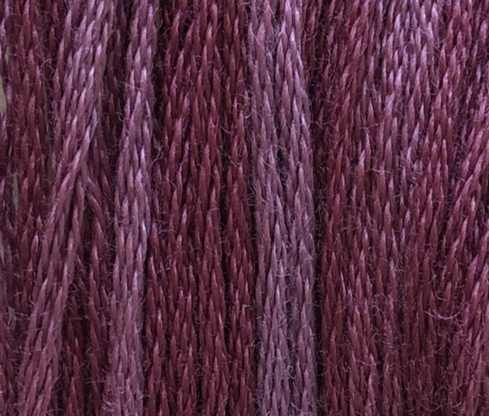 This 6-stranded 100% cotton fiber floss is hand-dyed. The process gives the colors a variegated appearance that's enough to be noticeable, yet subtle enough to blend naturally.